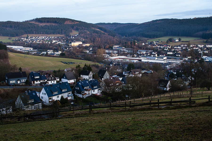 Vom Bahnhof aus verlassen Sie Bad Berleburg. Die Schulstrasse abwärts bis zum Kreisel, hier biegen Sie links ab Richtung Dotzlar. Nach ca 200 Metern bei der Bahnüberquerung biegen Sie direkt hinter dem Bahndamm rechts ab. Dieser unbefestigte Weg führt vorbei an Gärten und Wohnhäusern hinaus aus der Stadt.