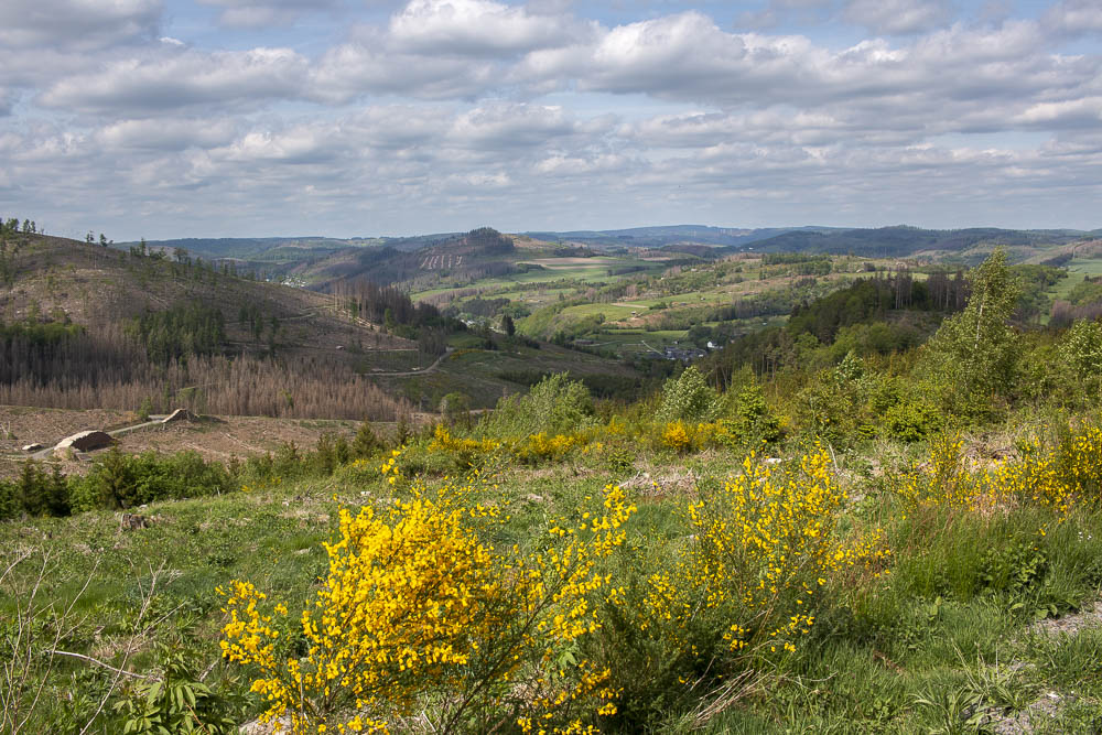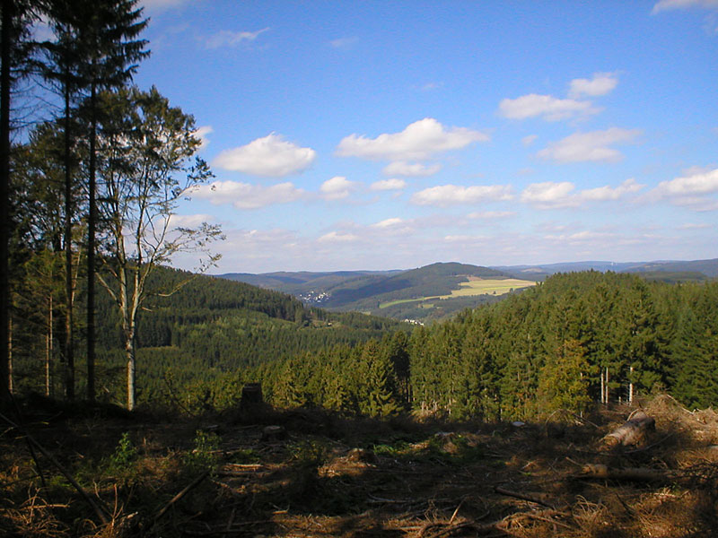 Dort, wo der Wirtschaftsweg auf die L 903 trifft, fahren Sie direkt links und folgen der Ausschilderung "Sackpfeife". Vorbei am Parkplatz kommt zunächst eine Rechtskurve, es geht ein paar Meter bergab und dort, wo der Asphaltbelag in einen Schotterweg übergeht befindet sich die Landesgrenze NRW-Hessen. Hier im Hessischen folgen Sie der Wanderroute "X 23", also zunächst an der Wegkreuzung geradeaus und dieser Weg führt mit einigen Windungen und etwas Auf und Ab bis zum Lausfeld. Bitte immer auf die "X" Zeichen achten und Sie sind automatisch auf dem richtigen Weg.