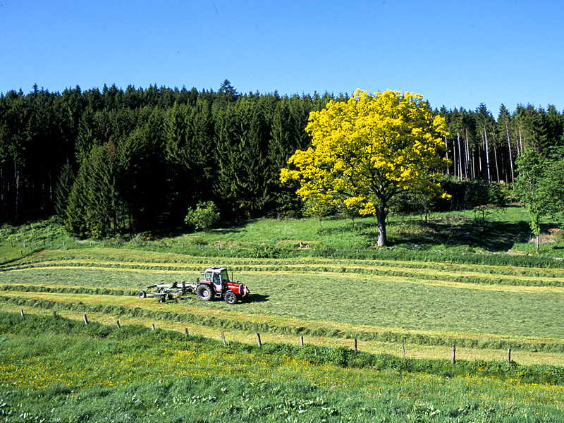 Wenn Sie zwischen Mitte Mai und Mitte Juni hier vorbeikommen, schauen Sie unbedingt einmal in das kleine Rüsselsbachtal. Unmittelbar an der Goldeiche steht eine Ruhebank, die zum Verweilen und Rasten einlädt.